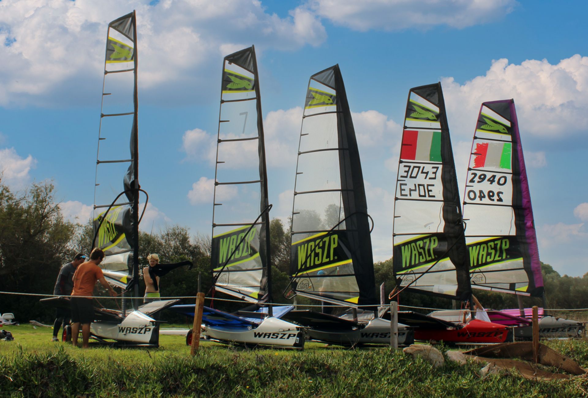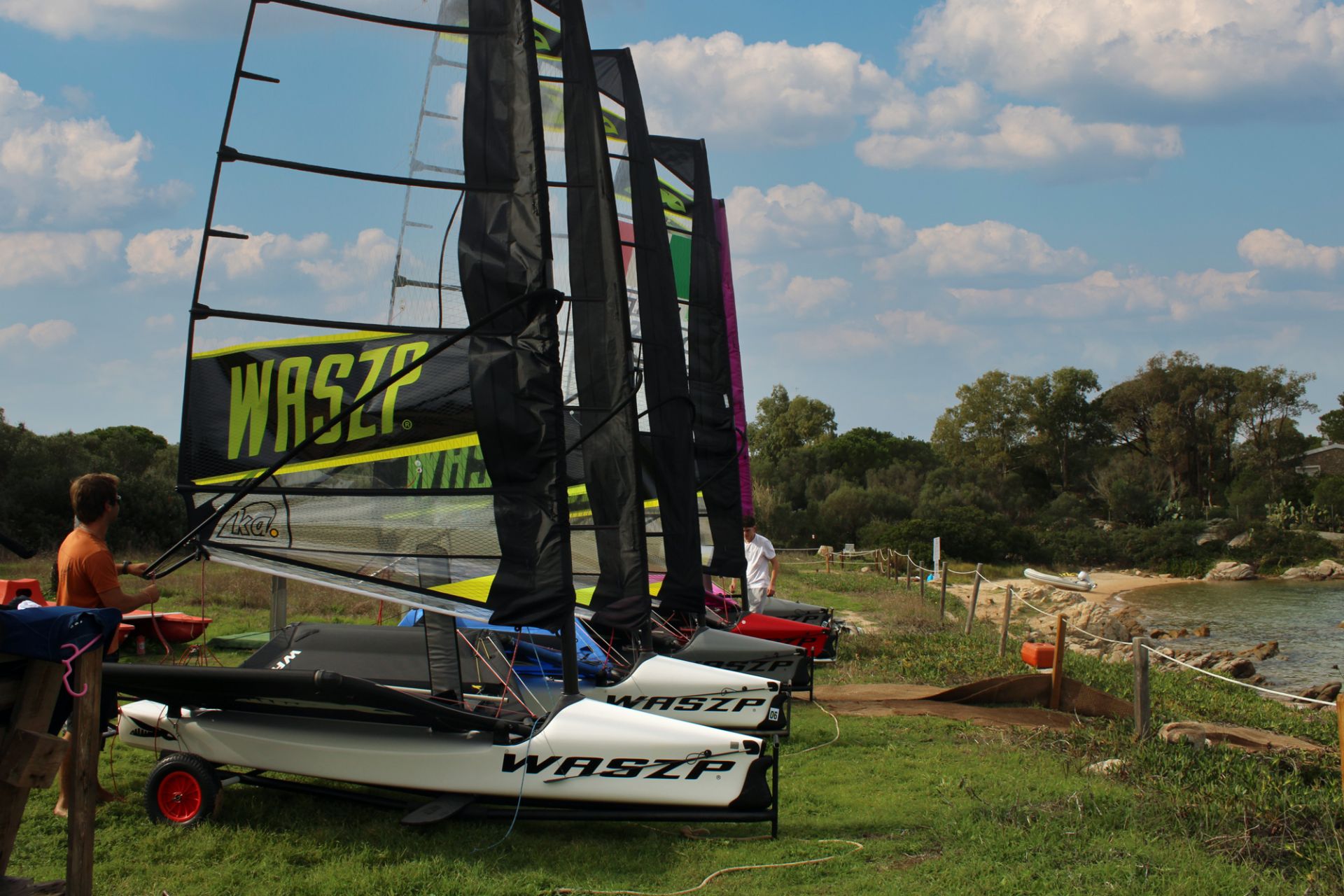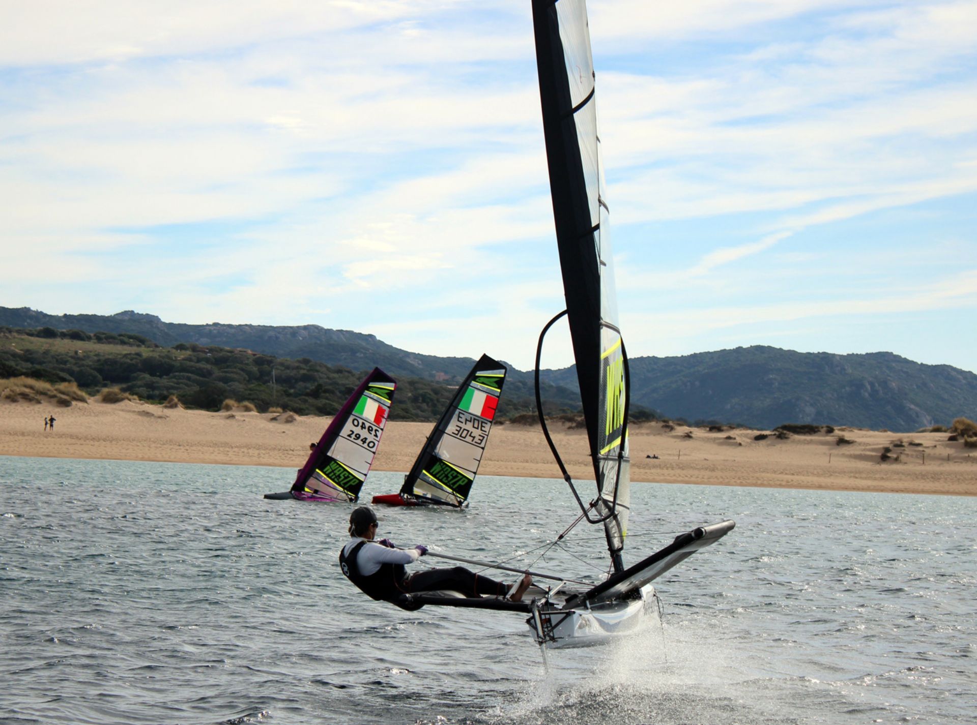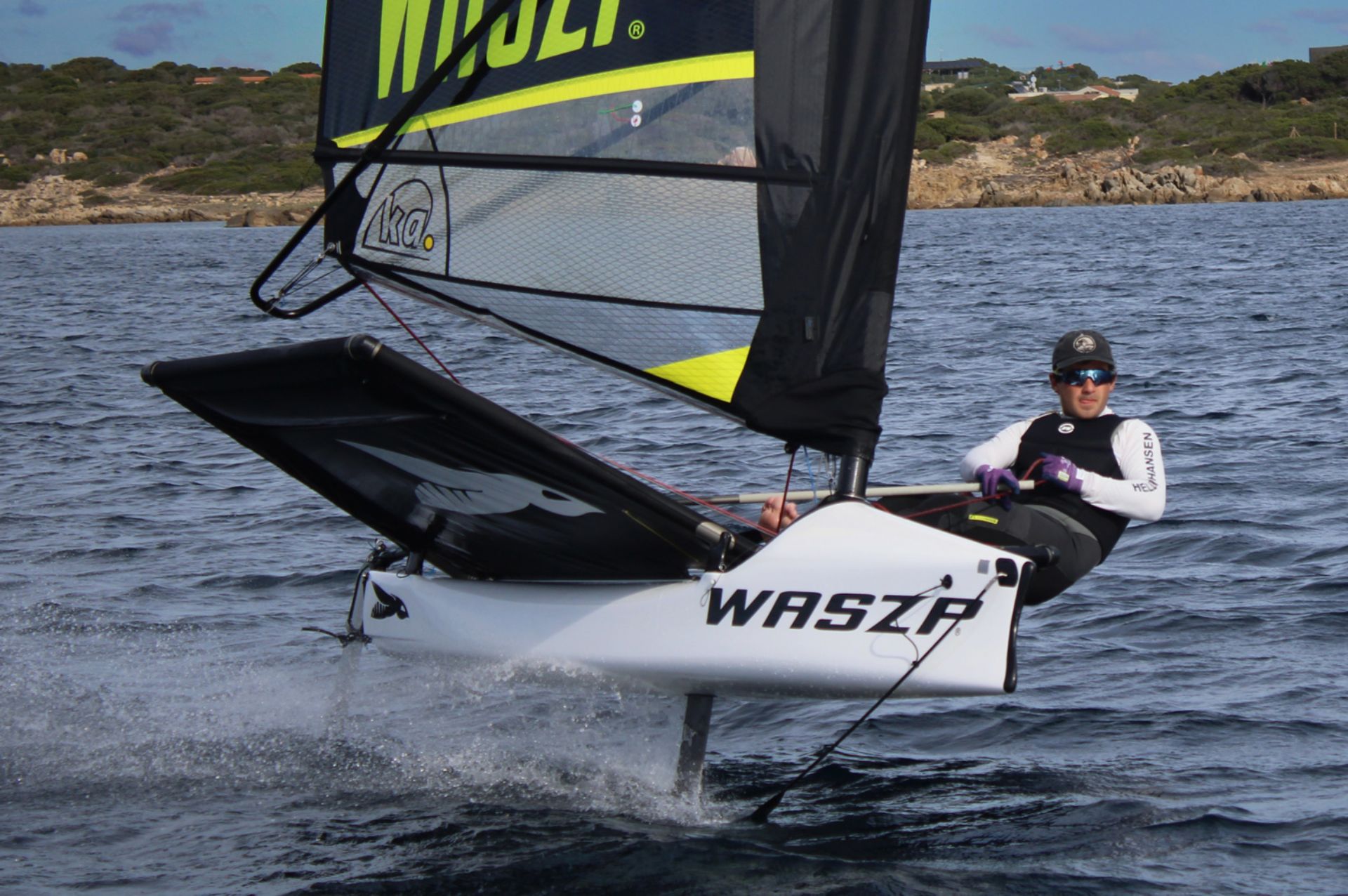 Il Waszp è un’imbarcazione monoposto in fibra di vetro, leggera e ultra-maneggevole, dotata di foil (ali subacquee) che sollevano lo scafo dall’acqua. Ha un alberto in carbonio autoportante, un boma tipo wishbone e tre piani velici. Questo scafo richiede una buona padronanza delle manovre di base e una certa sensibilità nel controllo del timone, della vela e dell'assetto. Si rivolge a velisti che cercano prestazioni elevate e un’esperienza di foiling pura.
